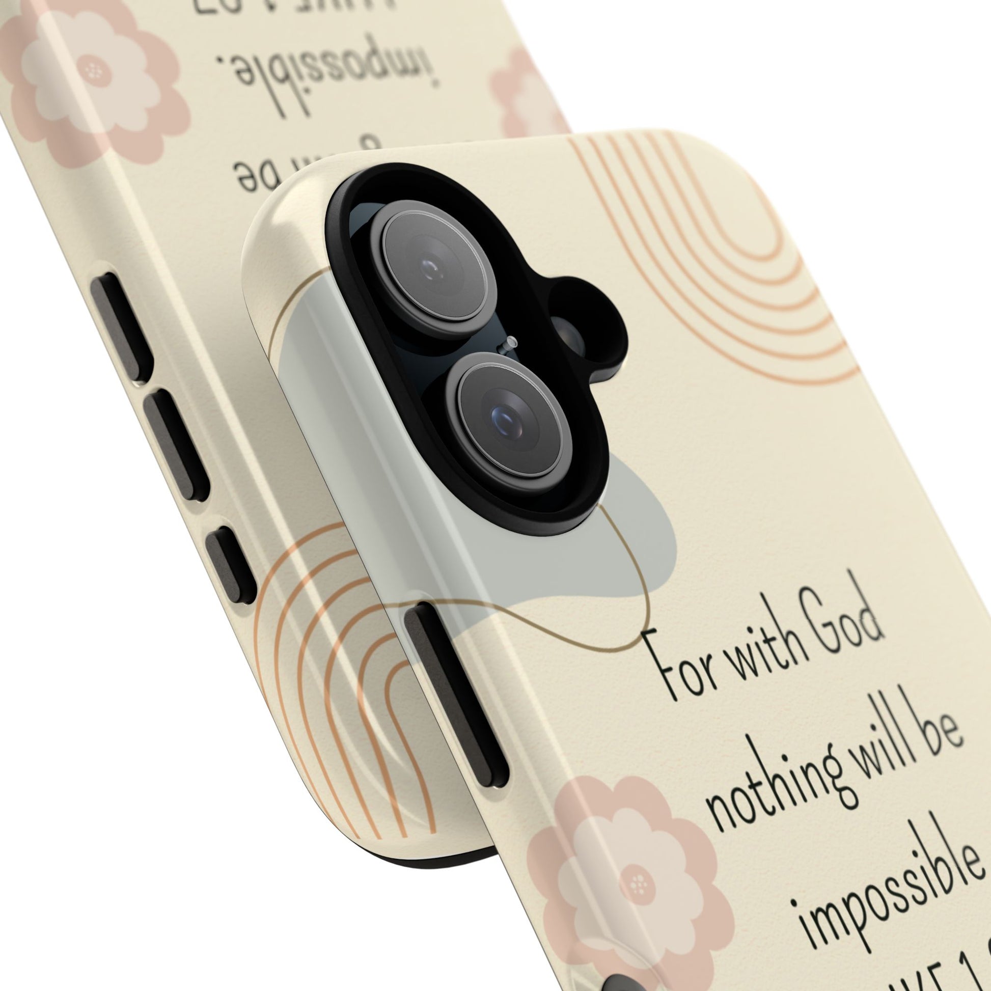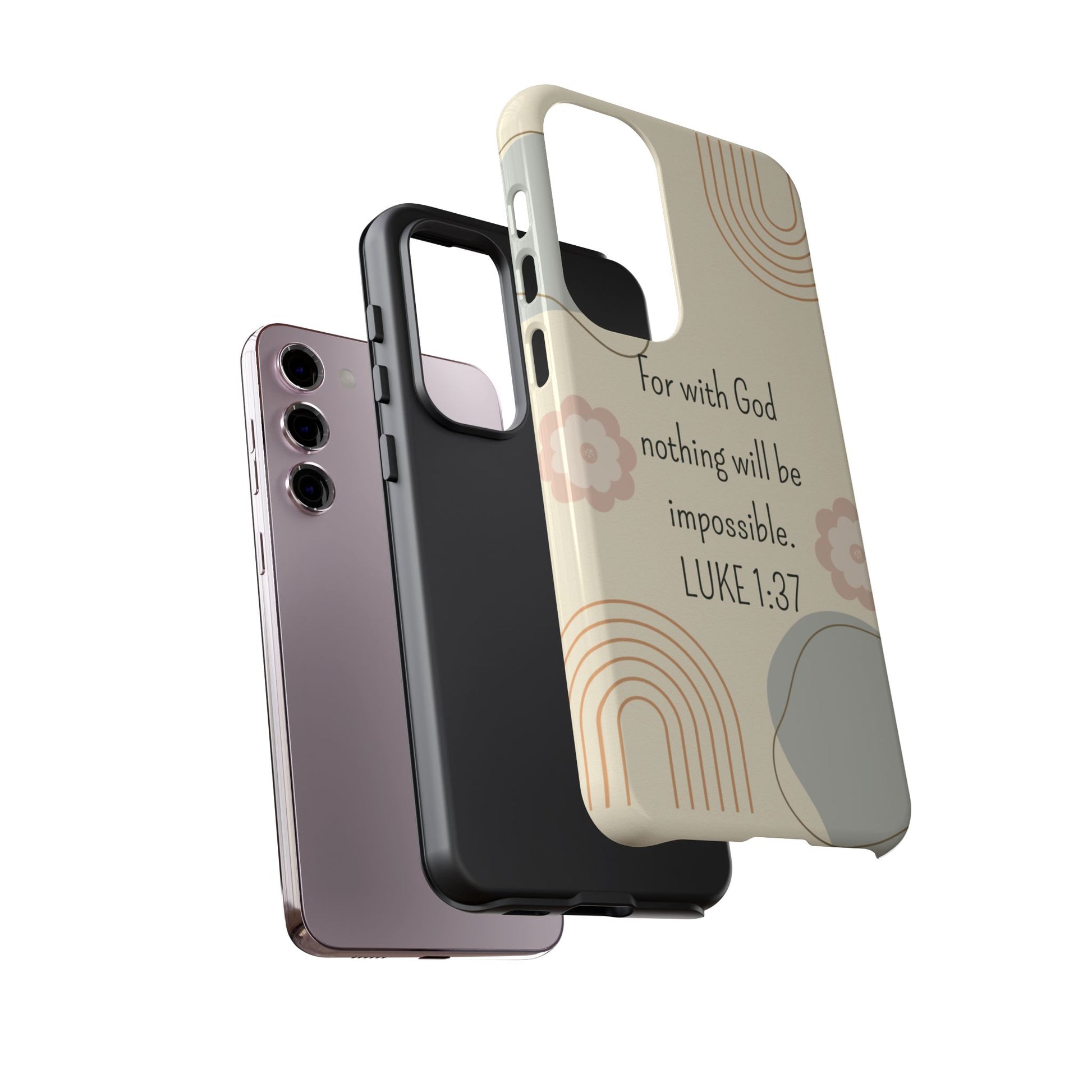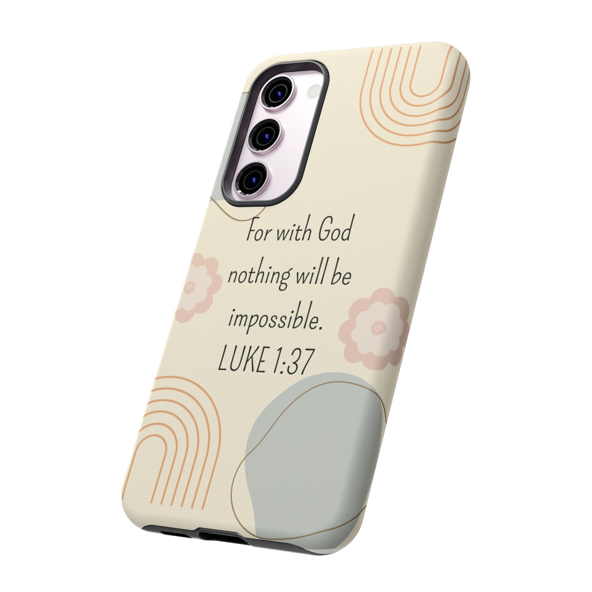 This Luke 1:37 Phone Case exudes a sense of faith and protection, making it a perfect accessory for those looking to incorporate their beliefs into their daily life. Ideal for religious individuals seeking a stylish and durable phone case to showcase their devotion.