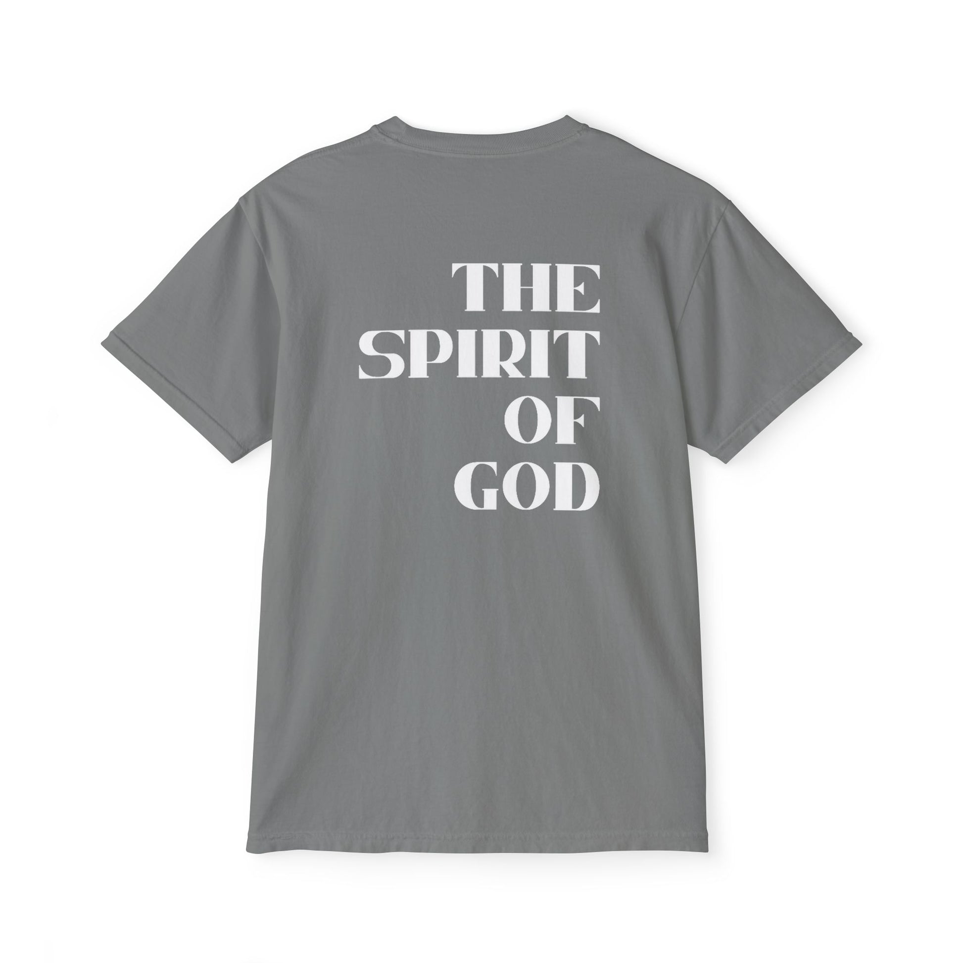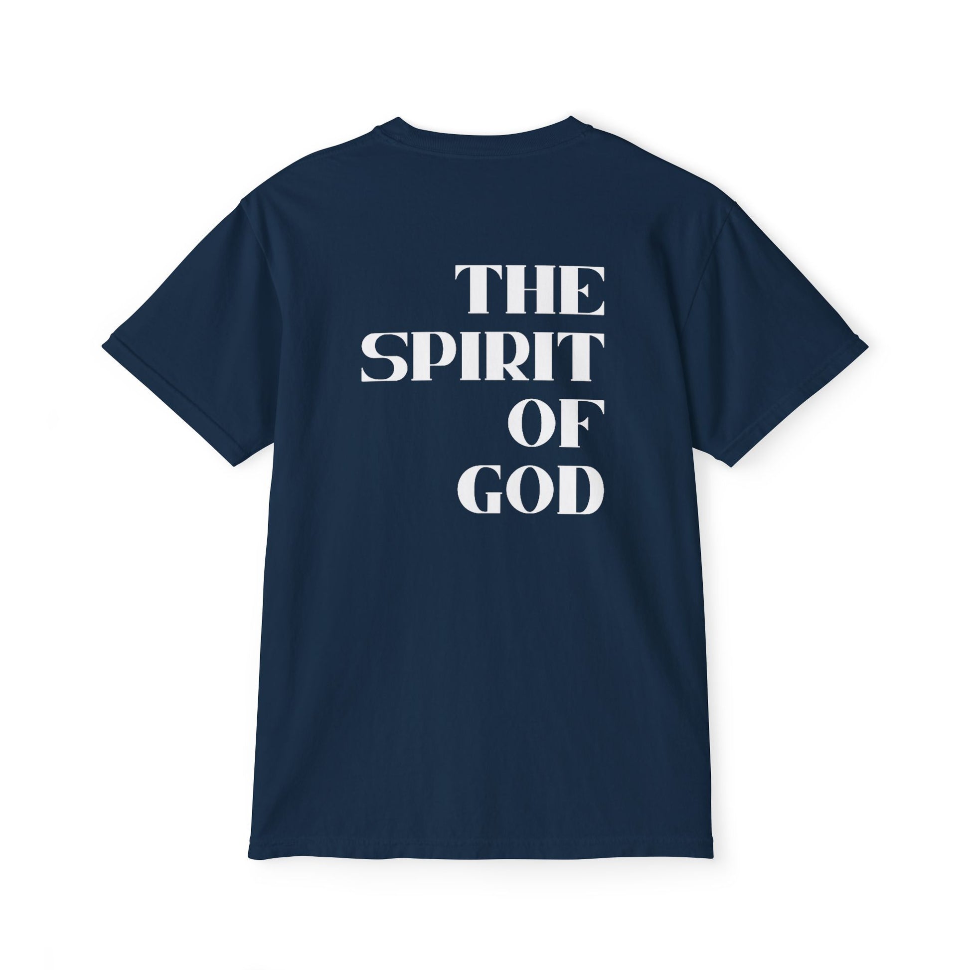 A men's pocket cross tee with the spirit of God on the back, giving a spiritual and uplifting vibe. Perfect for those looking to showcase their faith and beliefs. Relevant for religious holidays, church events, and everyday wear for those seeking inspiration.
